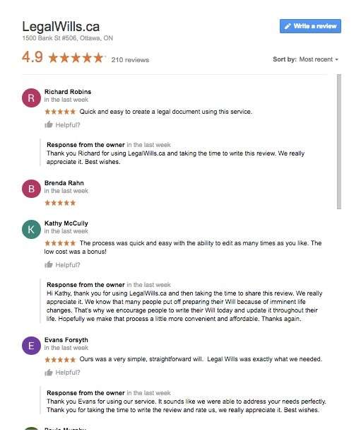 In addition we have our awesome support team, answering phone and email questions all day. This team is all based in Ottawa, and have all been with LegalWills.ca for over a decade. We treat all of our team members with respect and consequently have a very experienced, hardworking group. They can answer your questions while drawing upon decades of experience. Our Google reviews suggest that this is a winning formula.